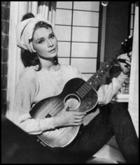 But the first, and most sublime, rendition belongs to Ms. Hepburn. Propped on a window sill with her little guitar, she is the picture of elegance and sophistication.
