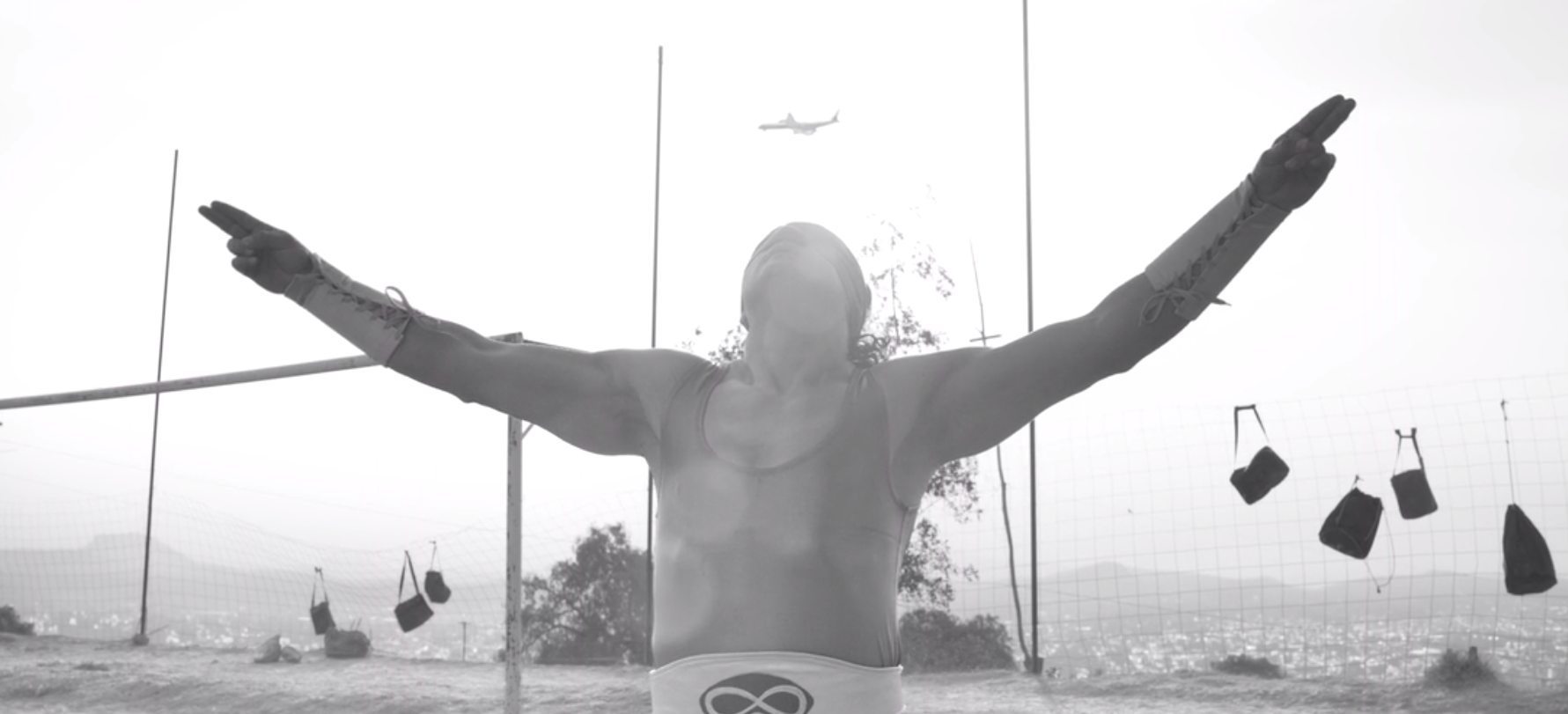 The closest thing to a male role model in the film is Professor Zovek, a performer known as Mexico’s Houdini, who carried out feats of strength on TV. Early in the film he is seen on a TV screen pulling a car with his teeth. Later he shows up to train the Halcones in how the mind controls the body (the real-life Zovek was rumored to be a black ops trainer). He demonstrates a seemingly simple balancing trick, which none of the men are able to accomplish. Cleo does it without a problem.